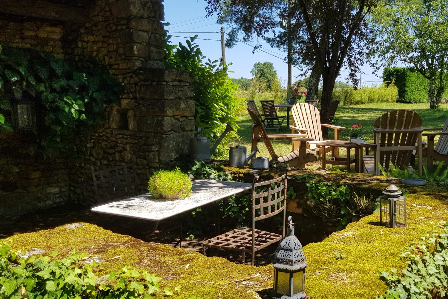 Ce gîte de charme en Dordogne classé 4 **** vous séduira par ses volumes et son équipement grand confort. Par ailleurs son accès direct sur notre parc de 2 ha vous permet de profiter au maximum de l’extérieur. Vous disposez d’un salon de jardin avec fauteuils, tables et chaises. Entièrement indépendant, il est entouré par la bambouseraie, notre cour fleurie et un auvent typique en pierres sèches.