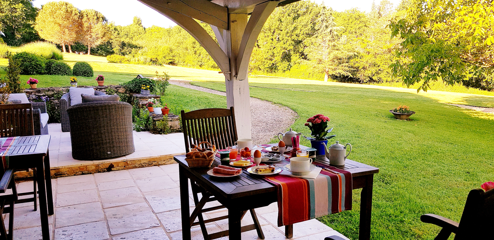 Pendant que vous profitez de cet instant, nous vous apportons les spécialités de notre petit-déjeuner « maison  » différentes chaque jour. Ainsi et selon vos envies, vous goûterez à notre gâteau, confitures, salade de fruits frais et jus de fruits vitaminé. En fonction de la saison, vous pourrez déguster les fruits en provenance du verger tels que les cerises, prunes, pommes, noix. Bien sûr tout ceci est accompagné de laitage, fromage, viennoiseries, pain frais et la boisson de votre choix.